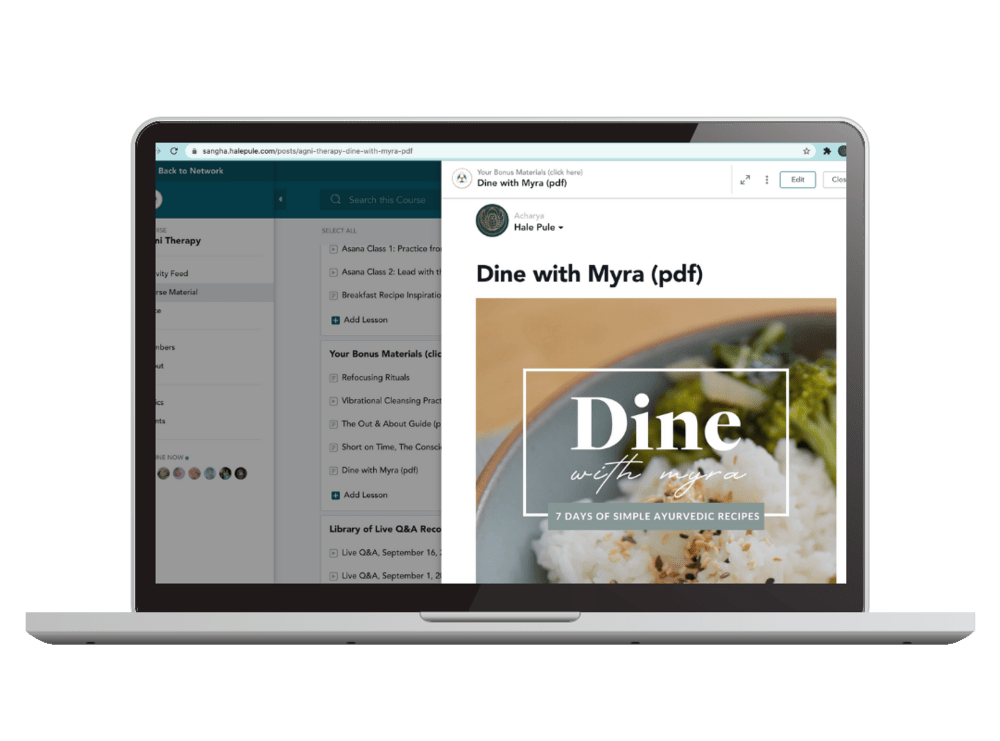 You won’t be able to do the kitchari reset in week three. You will be able to do most of the other practices. As Agni Therapy is currently an unlimited membership, you can come back and do the kitchari reset section another time.
