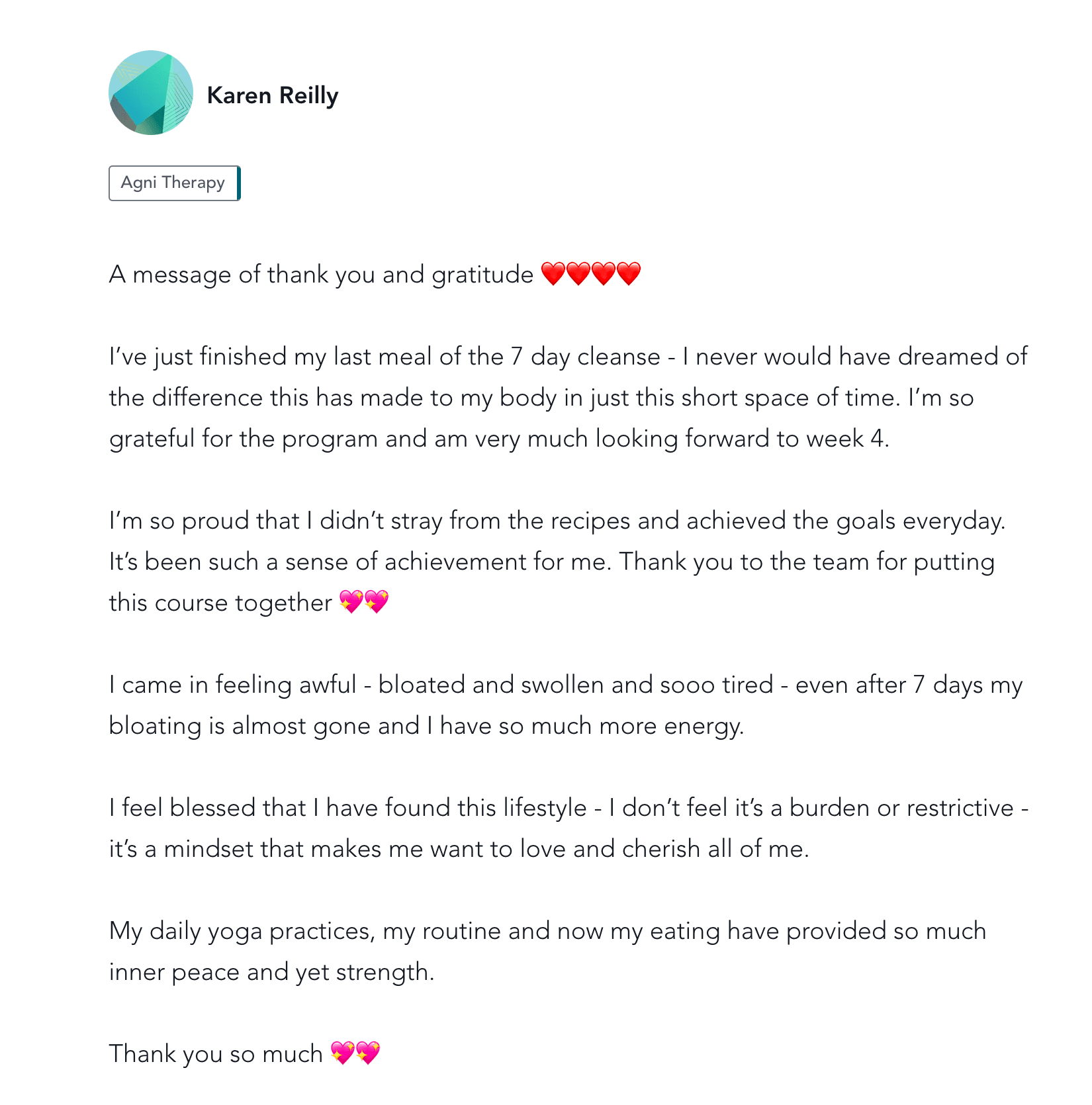 case studies and testimonials on this link, in my digestive health masterclass and on the Agni therapy information page above. Here are two more: